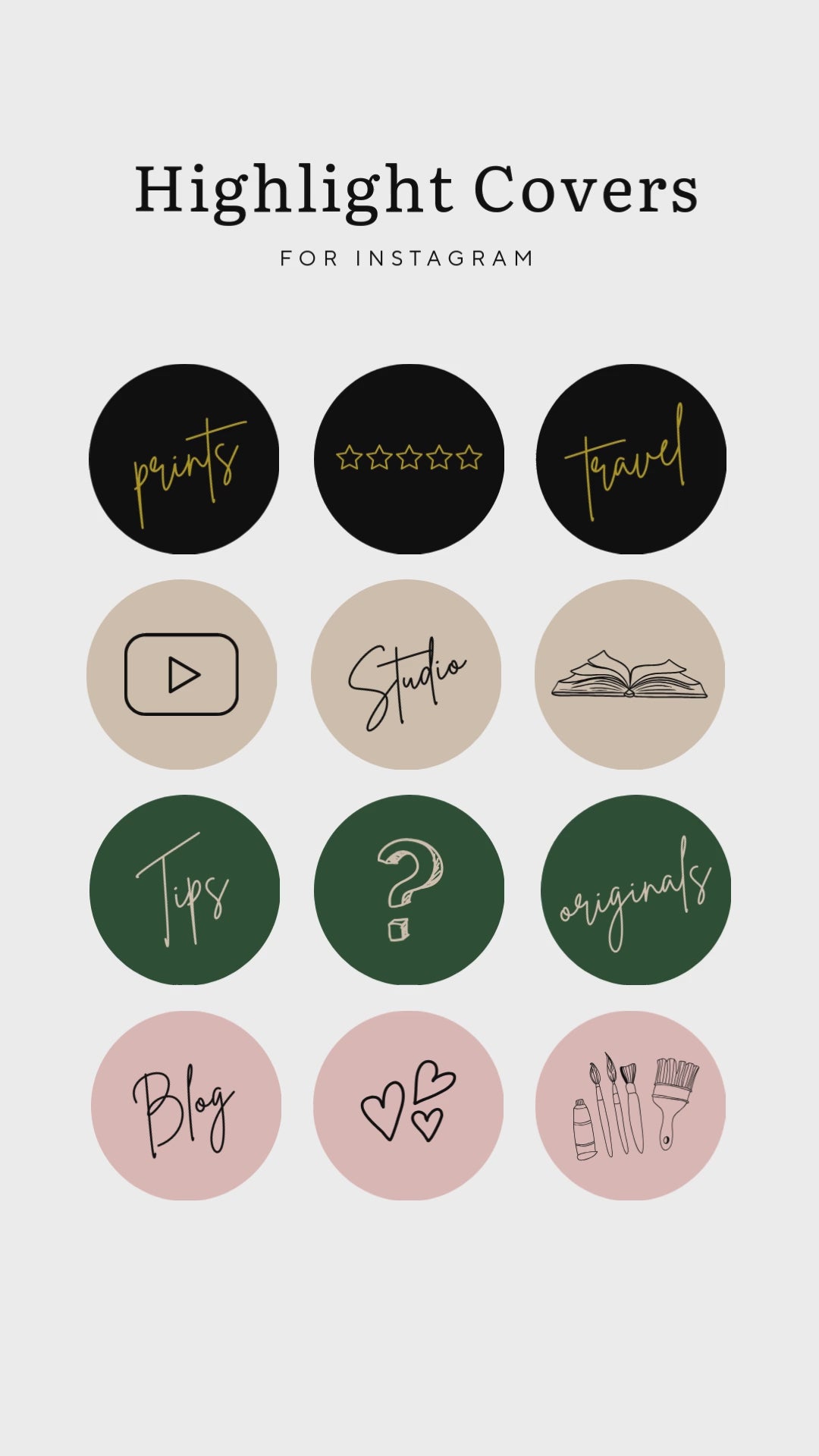 Whether you’re a painter, illustrator, photographer, or creative entrepreneur, these customizable highlight covers help your profile tell a clear story the moment someone visits.