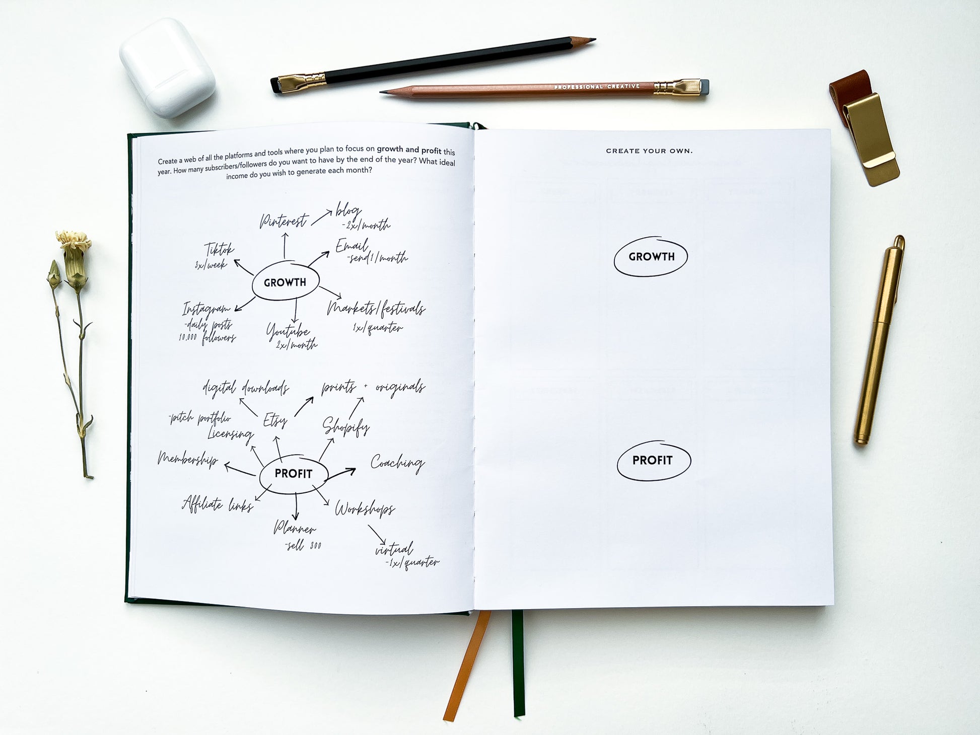 As an educator and emerging artist myself, I created this planner to organize my personal and my creative life. This planner is specifically designed for artists and creatives currently pursuing or growing their entrepreneurial careers.